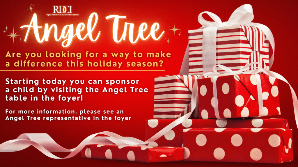Are you looking for a way to make a difference this holiday season? Join us in supporting our community through the Angel Tree Project. Starting today you can sponsor a child by visiting the Angel Tree table in the foyer and selecting a gift tag from the tree. For more information, please see an Angel Tree representative in the foyer.