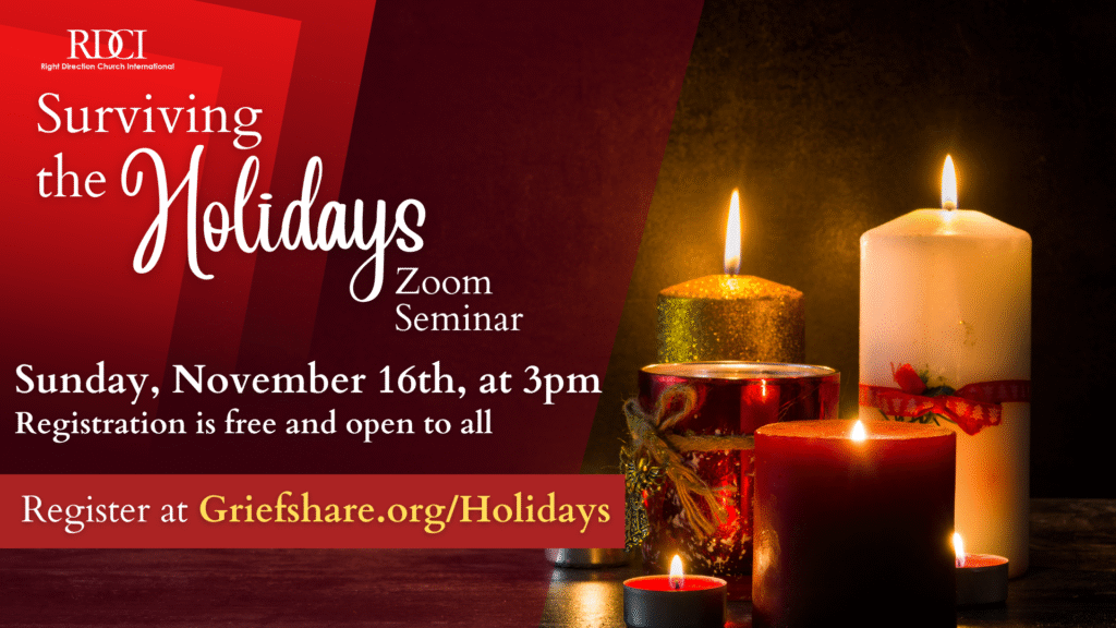 Join the Overcoming Grief Ministry for 'Surviving the Holidays” an encouraging seminar where you will be with people who will listen without judgment and share helpful insights. This Session will be held Sunday, November 9th, at 3:00 p.m. via ZOOM. Registration and participation are free and open to all. To register click below to visit griefshare.org/holidays and follow the prompts.